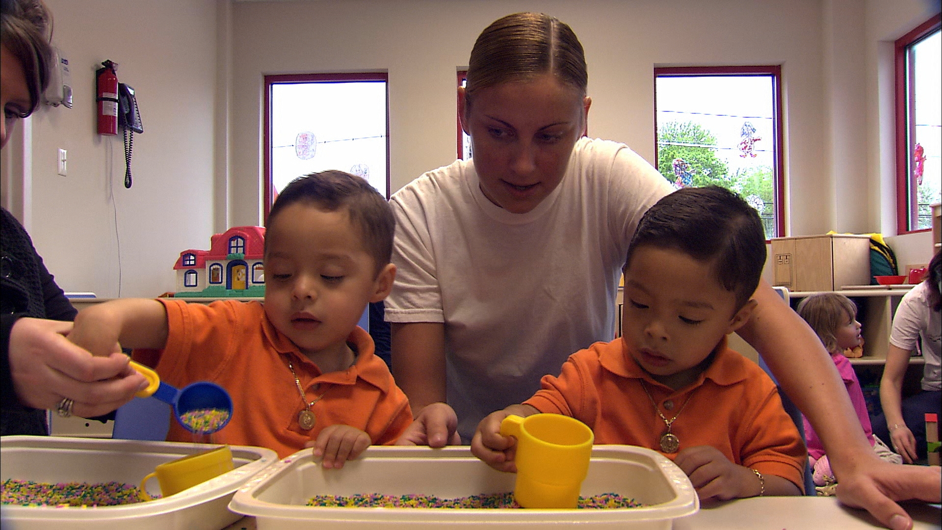 Identical twins Sergio and Fernando Lopez receive early intervention at Thursday's Child, a publicly-funded program in Staten Island, NY. |